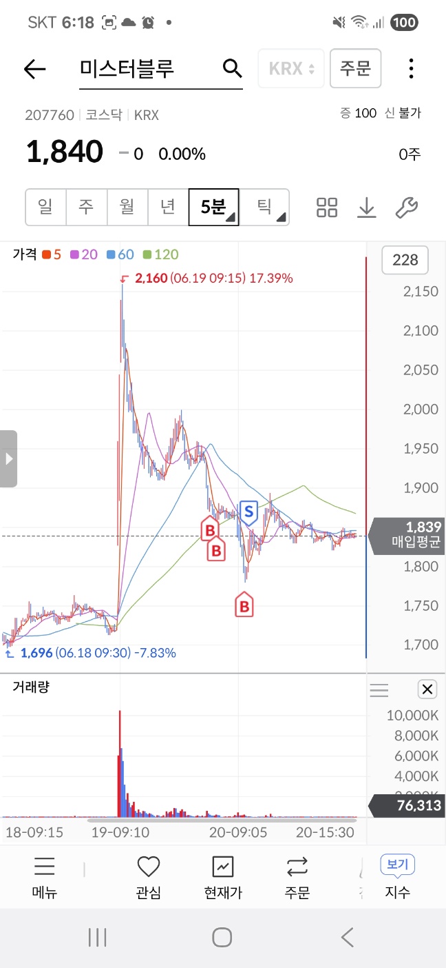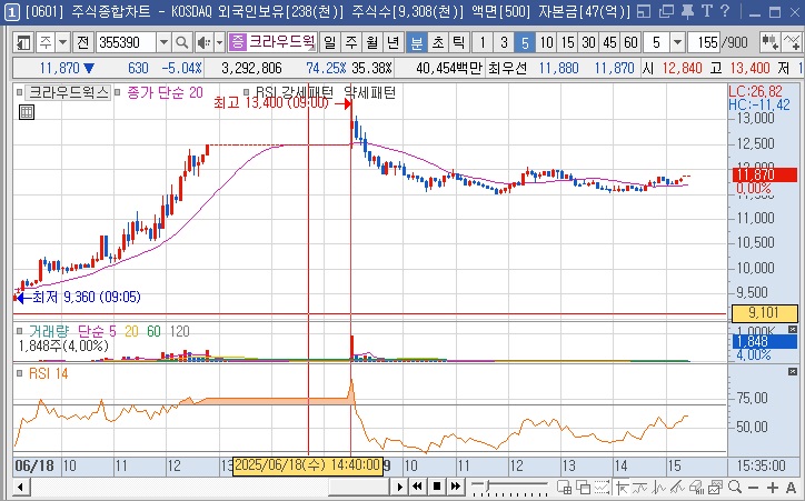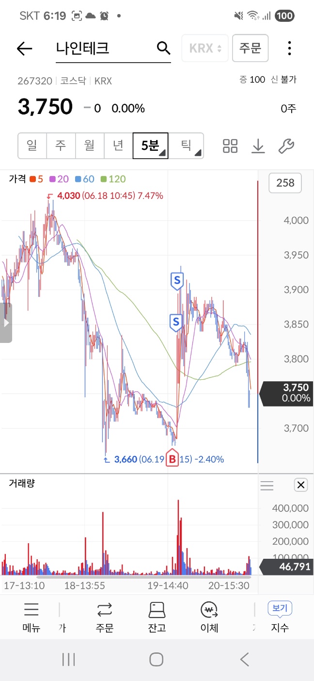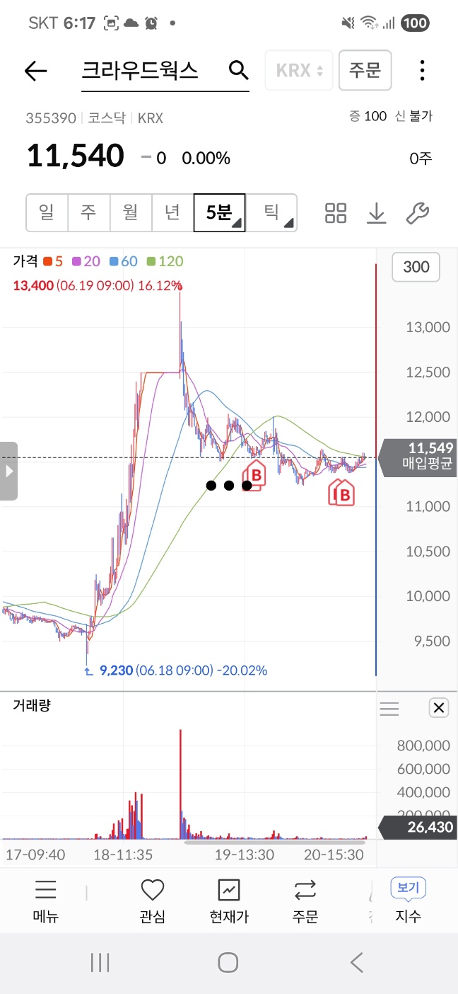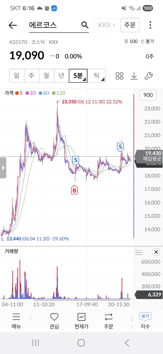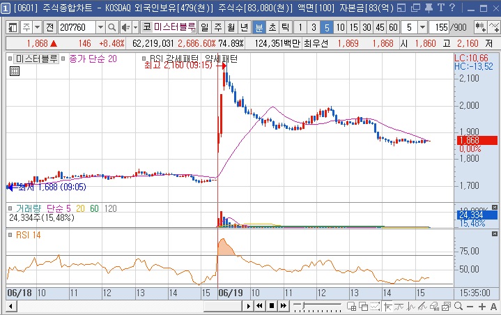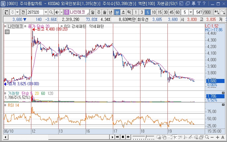 장이 좋아서 더 끌고가볼까함. (6/20 외인,기관 양매수)