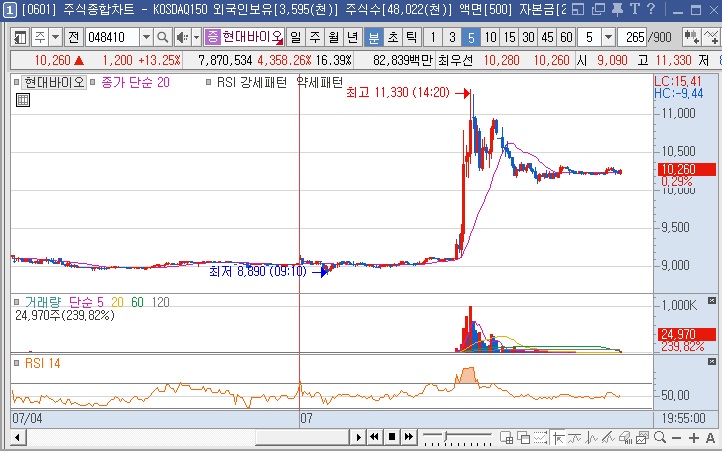 ✅ 현대ADM은 현대바이오와 함께 세계 최초로 사람 유래 오가노이드 실험을 통해 췌장암 항암제의 무력화 원인이 ‘가짜내성(Pseudo-resistance)’임을 입증했다는 소식에 상한가를 기록함.