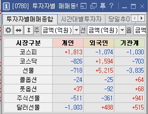 코스피는 개인의 매수세로 소폭 상승했으며, 코스닥은 외국인의 순매수로 강세를 보였음.