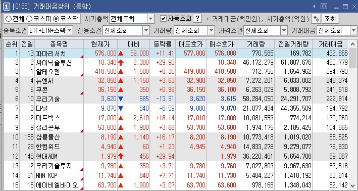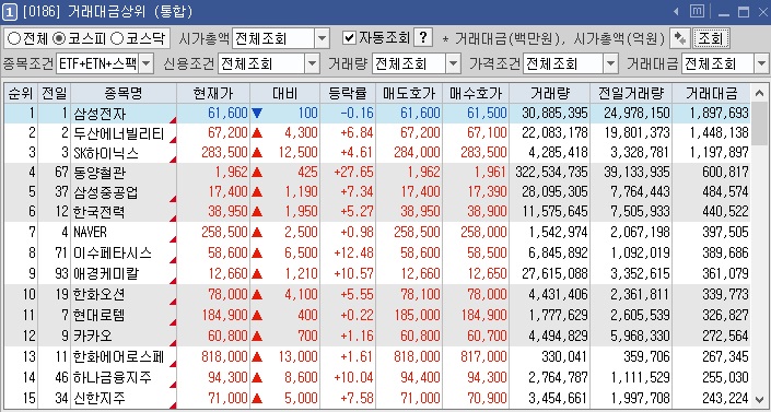 거래대금 상위 종목