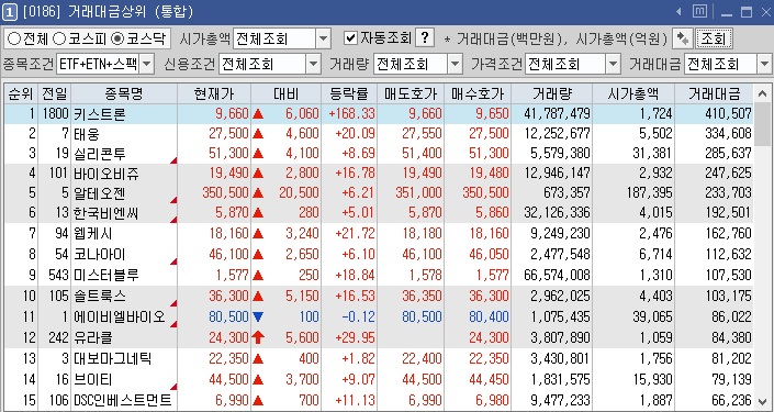 금일 브이티, 에이피알,코스맥스, 실리콘투 모두 동반 강세.